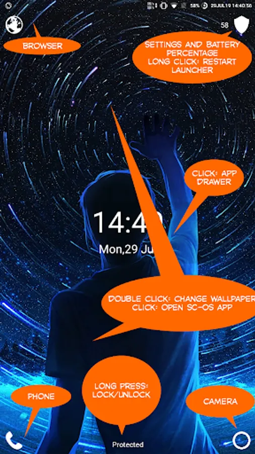 -press on else area to open SC-OS app(for spy camera, must be installed)