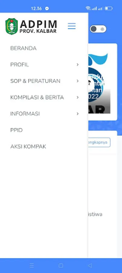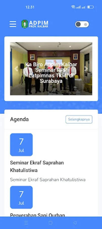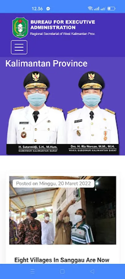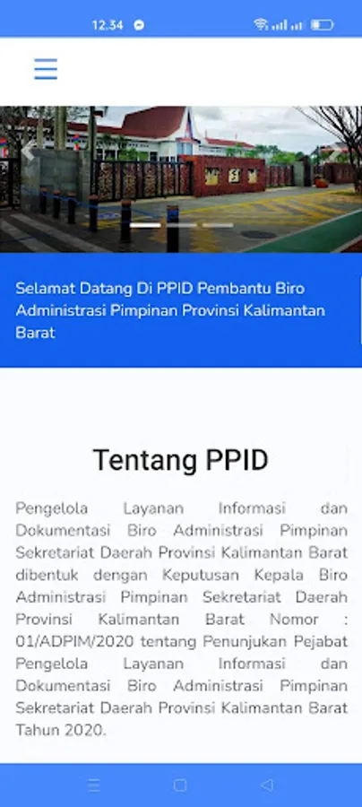 This application contains information on profiles, vision and mission, employees, general public, public services, PPID, and English News for the administrative bureau of the Regional Secretariat of West Kalimantan Province.