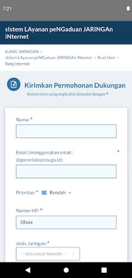 ILANG JARINGNAN is an abbreviation of the iInternet NETWORK COMPLAINTS SERVICE SYSTEM