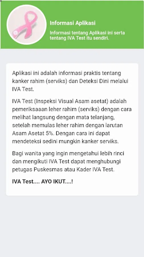 This application is practical information about uterine cancer (cervix) and Early Detection through IVA Test.
