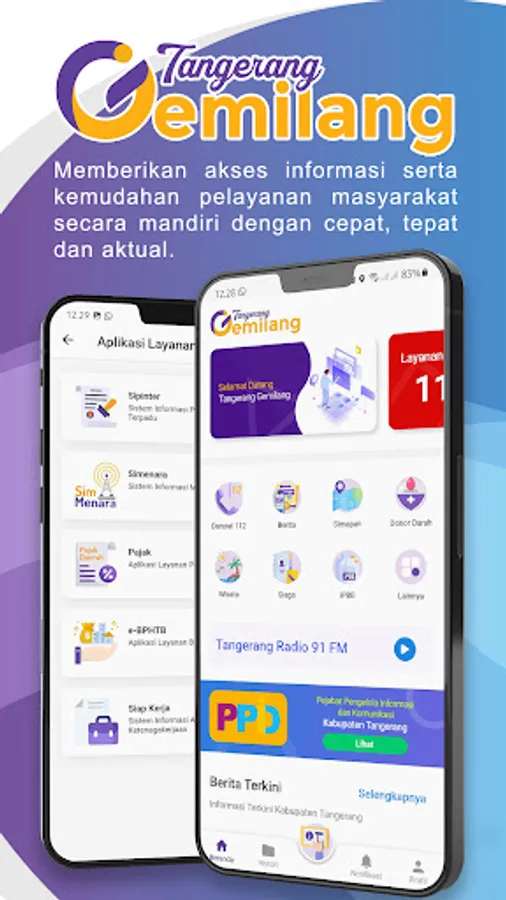Tangerang Gemilang is a Tangerang Regency Application portal that makes it easier for people to queue online, view news about Tangerang Regency, take care of licensing administration, taxes, find work, Emergency Services etc.