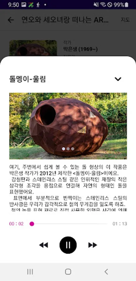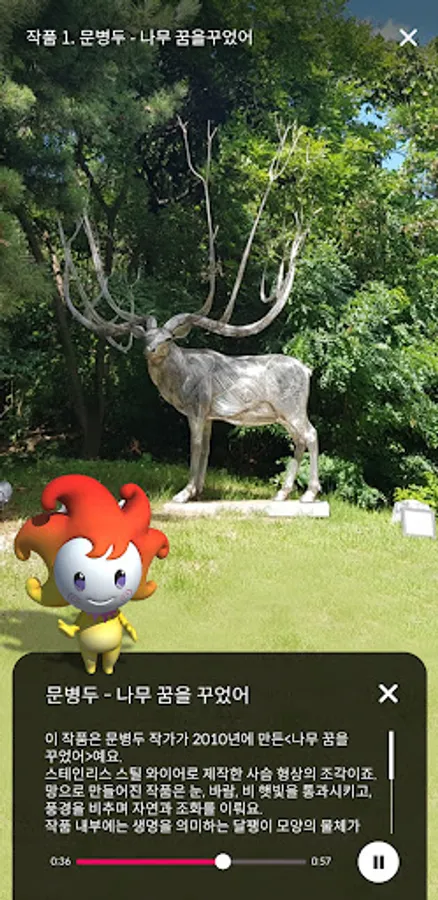 - Augmented reality artwork commentary by Yeon-oh and Seo while looking at the outdoor collections on site at Hwanho Park