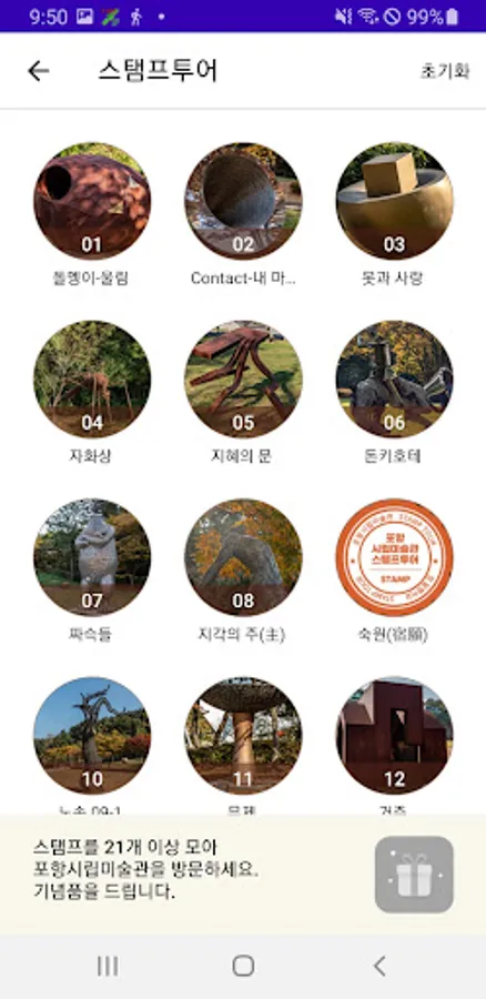 - You can enjoy the augmented reality game hidden in the outdoor collection of Pohang Museum of Art. 3) Stamp Tour