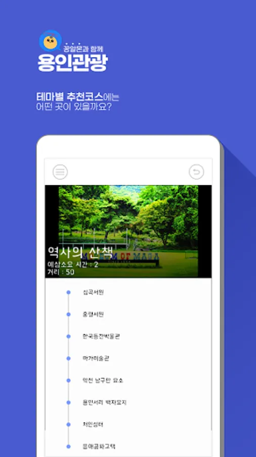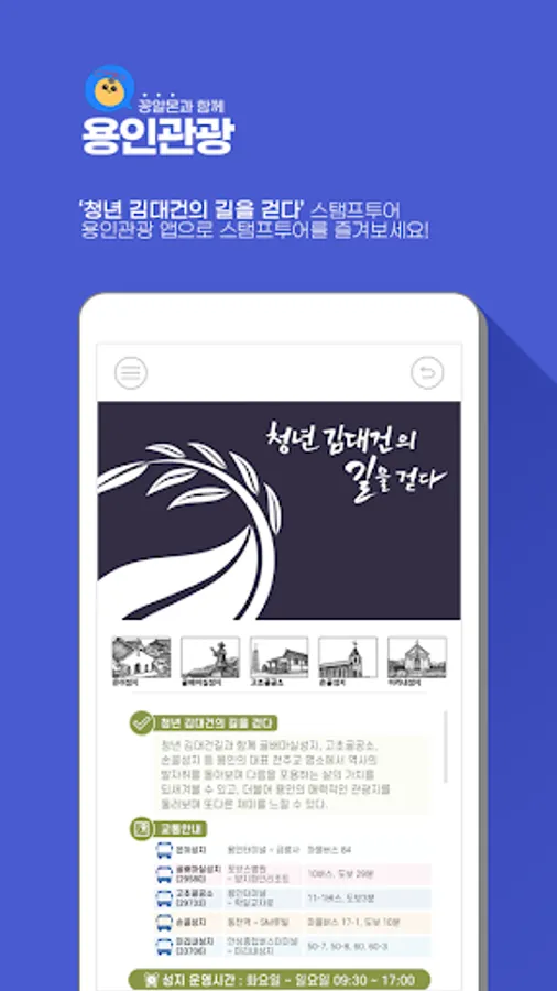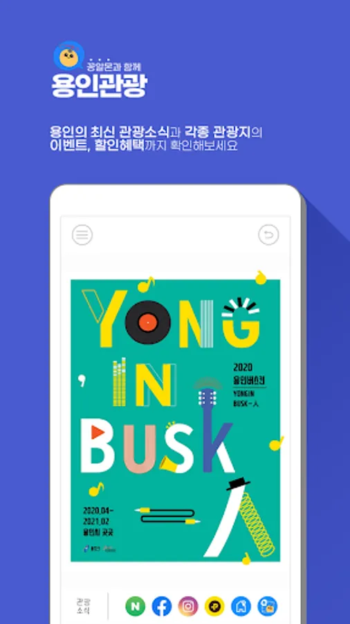 -Tourist e-map, tourism news, introduction to major tourist attractions, shortcut to Yongin Tourism SNS channel