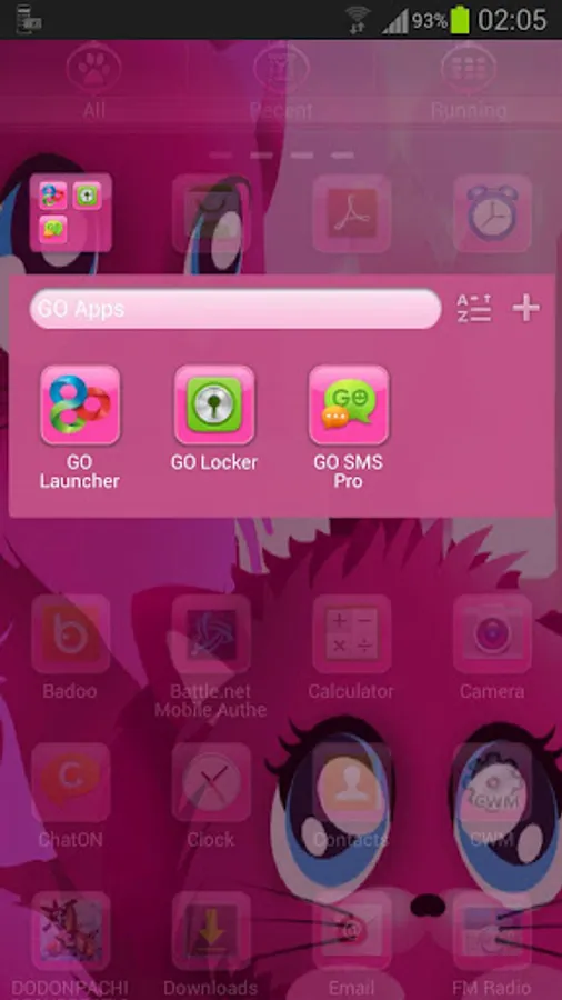Pink cats theme 4 Go Launcher EX only works with GO Launcher EX, if you do not have it, download for free from Google Play.