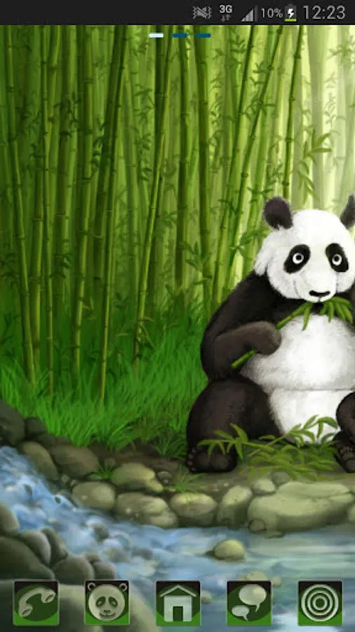 Black and white panda among the river, stone and bamboos. Together with her little teddy bear who Cie watches. :) One of the pandas them from the branches of bamboo leaves. Both are really sweet and sensitive, remember the Panda, a Bearish Bearish bamboo, its membership of the prey is no doubt, but in reality the animal eats bamboo shoots almost exclusively, though - like most predatory animals - do not despise eggs and rodents wilderness, that eats together with plant food.