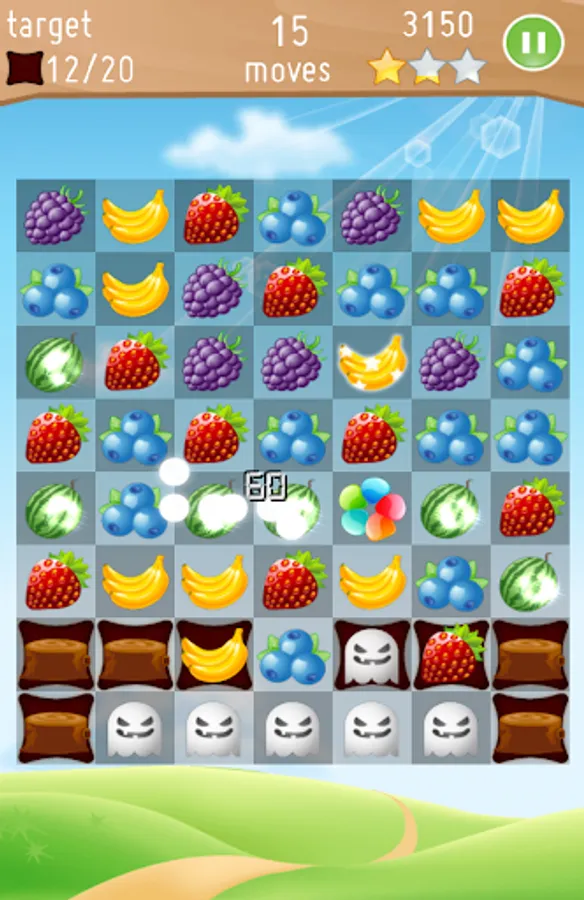 More fruits crushed more scores, and you will get some super fruit if 4 or more fruits matched.