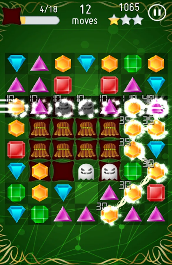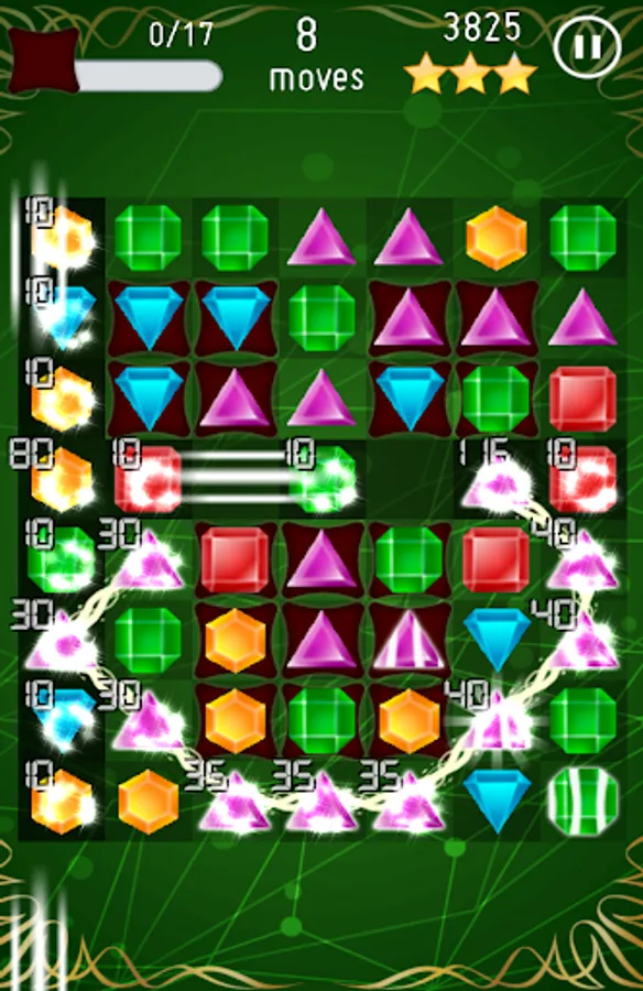 Connect and match 3 or more same jewels to crush, more longer you connect, more scores you get.
