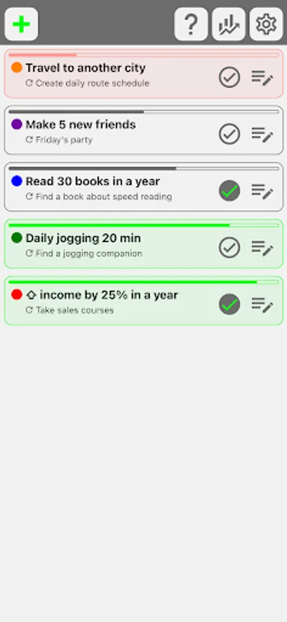 Put down your wishes in the form of cards, they will help you detect your progress on a single screen.