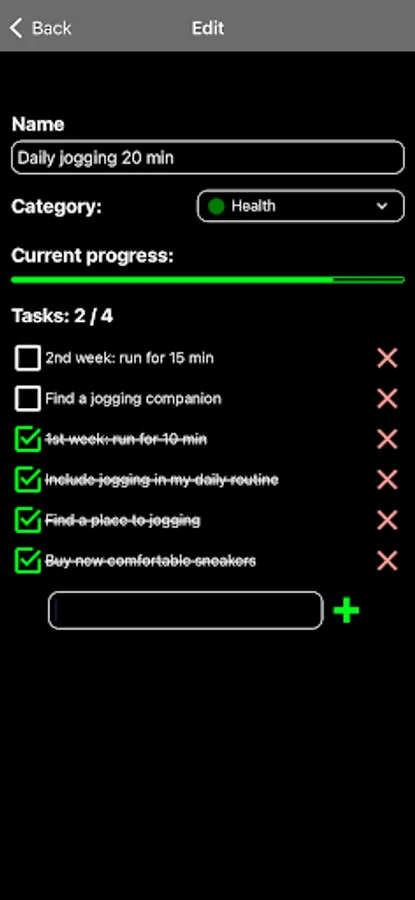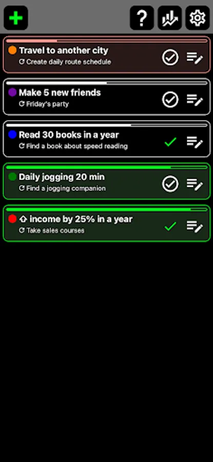 Put down your wishes in the form of cards, they will help you detect your progress on a single screen.