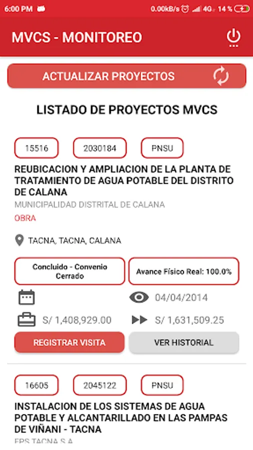 Mobile application associated with the Project Monitoring System for monitoring works in the field without the need of an Internet connection.