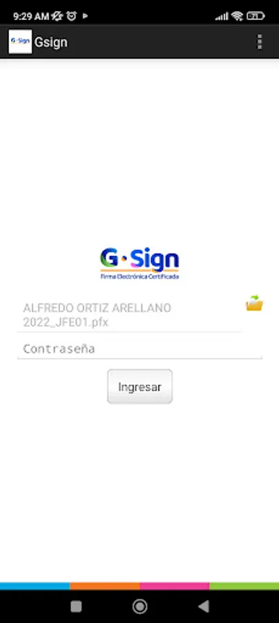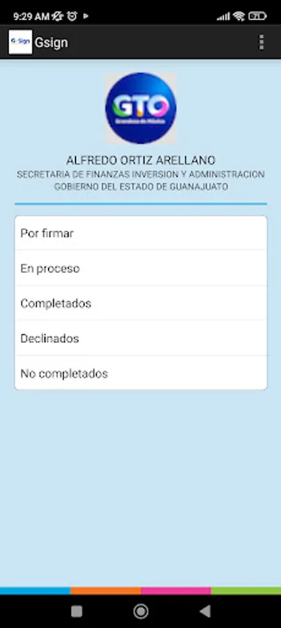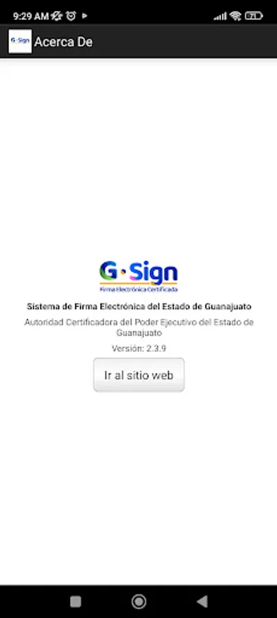 This application will allow you to use the system Electronic Signature Certified GSign from any device with Android 2.3 or higher operating system. To use this application, you are required to have an existing certificate issued by the certification authority EXECUTIVE POWER OF GUANAJUATO STATE GOVERNMENT and that the certificate is downloaded to your Android device.