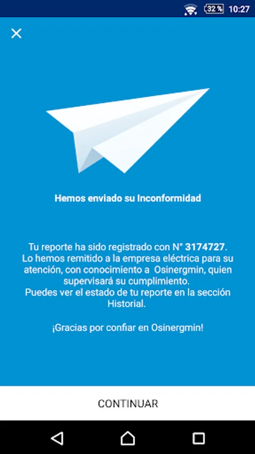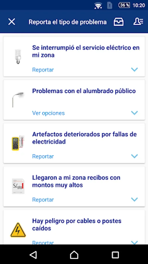 With this app it is now easier and faster to report problems to the electricity company that provides the service; for example, with public lighting, excessive charges in the electricity bill, power cuts, among others. The information reported will be sent to the electricity company to solve the problem, and Osinergmin will monitor its compliance.