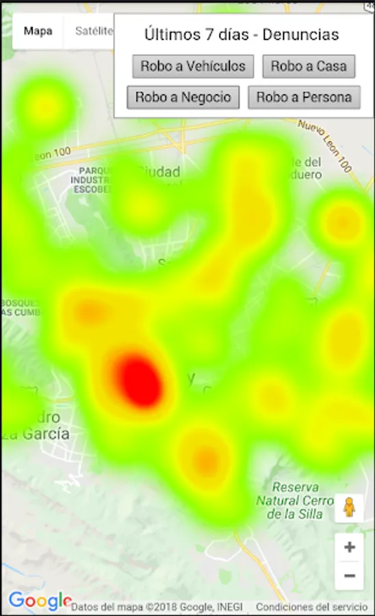 Select the Crime Map option, a heat map will be displayed based on the complaints made in the state of the last 7 days.