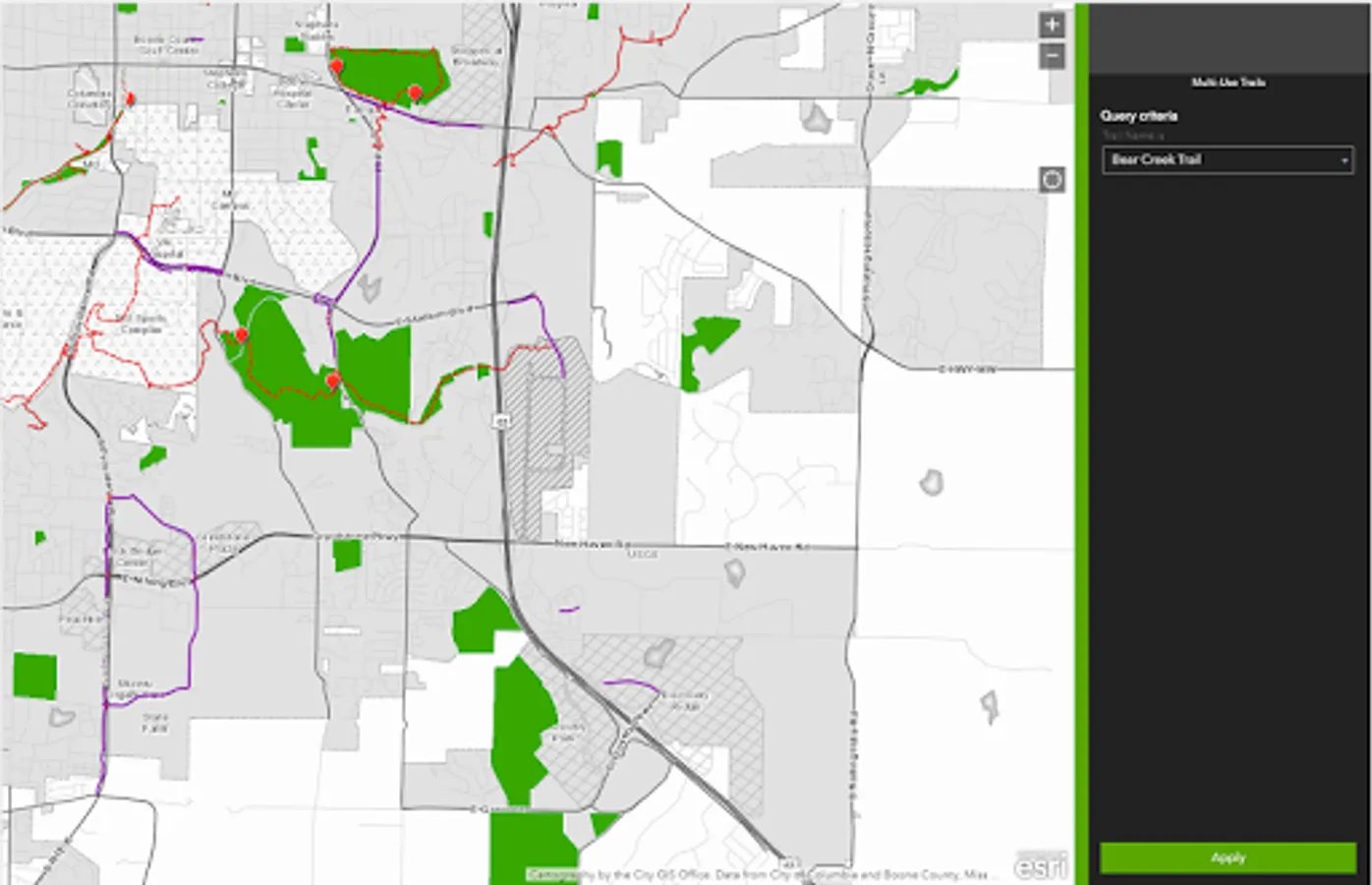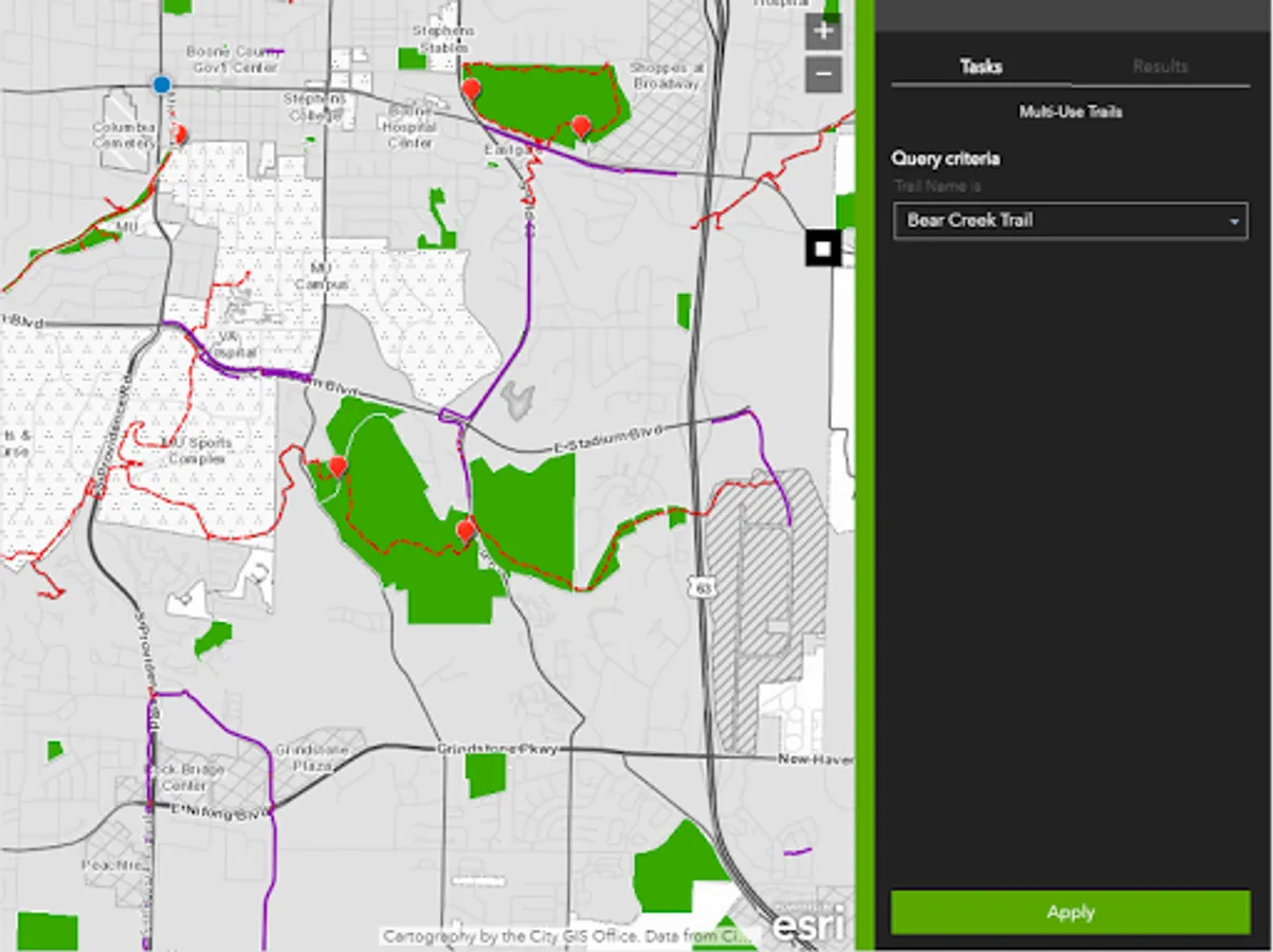 GIS mapping initiatives offer user friendly viewing of highly accurate trail system waypoints. Take Go Como Trails with you to assist with route planning when searching for trail or on-street connections, trailheads, underpasses and much more. The app will also provide locations of trail amenities such as drinking fountains, restrooms or bike repair stations. The fine details are available to make your solo or family trail adventures easier to plan!