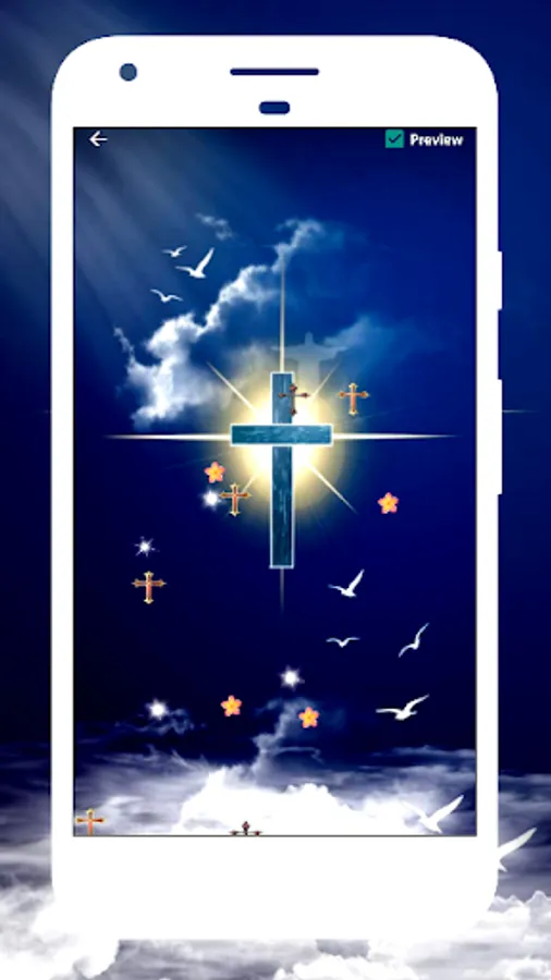 Cross: In this App God Wallpaper we have given six type of Cross pictures. When you choose these particles , it starts moving on the background screen and make your phone alive. Just feel the aliveness of the screen and see the magic of God.
