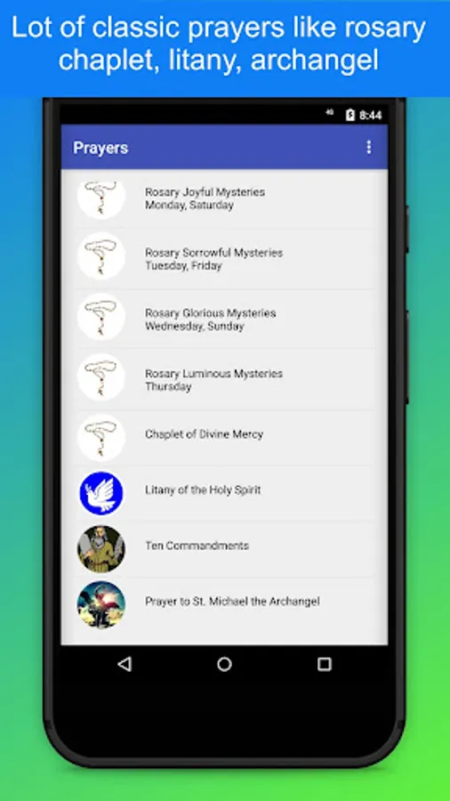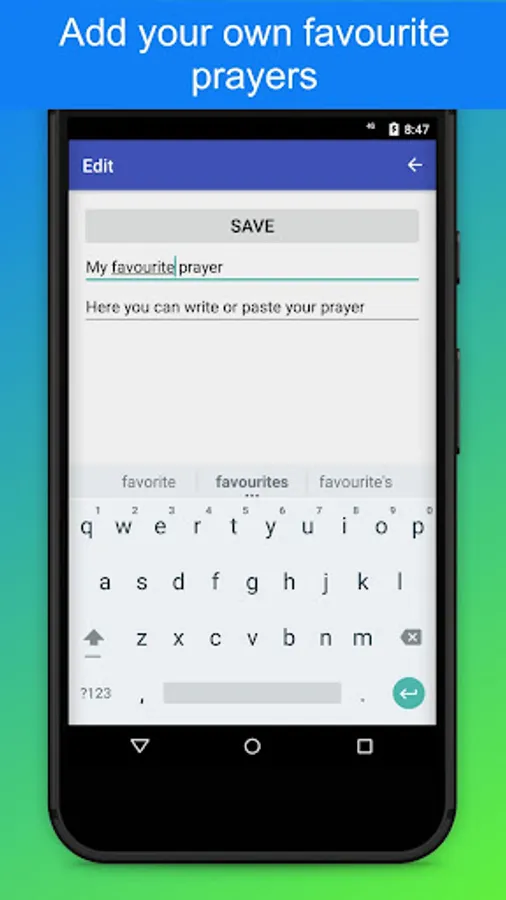 Prayer book with basic prayers + option to add your own prayers.