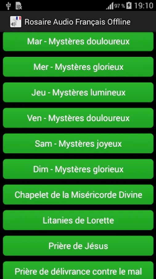 Pray the French Rosary offline anywhere - in traffic jams, on buses, at home, listen to the speaker and repeat the prayer.