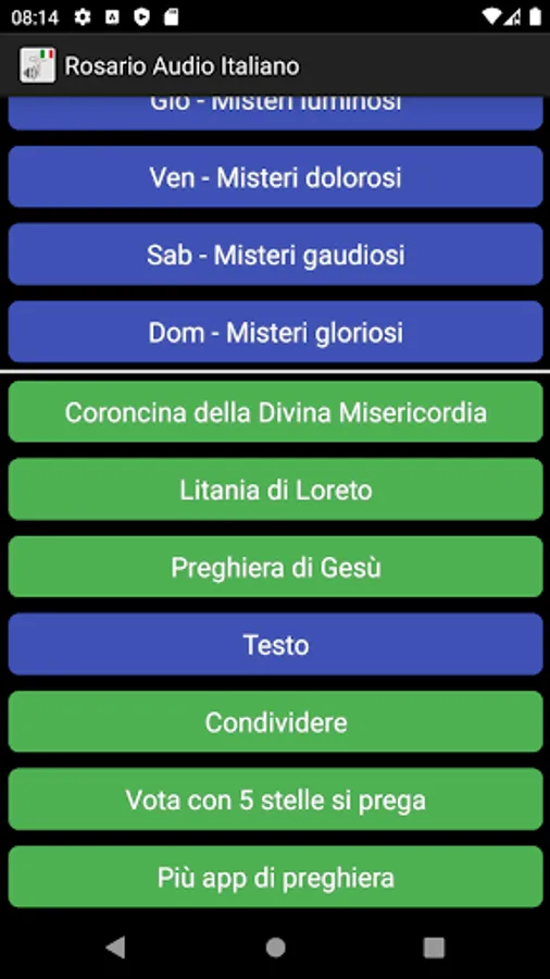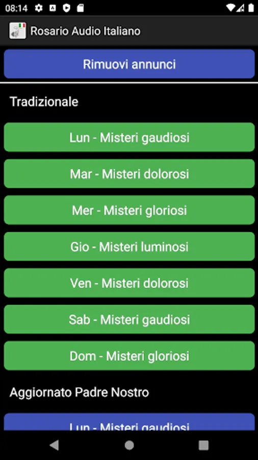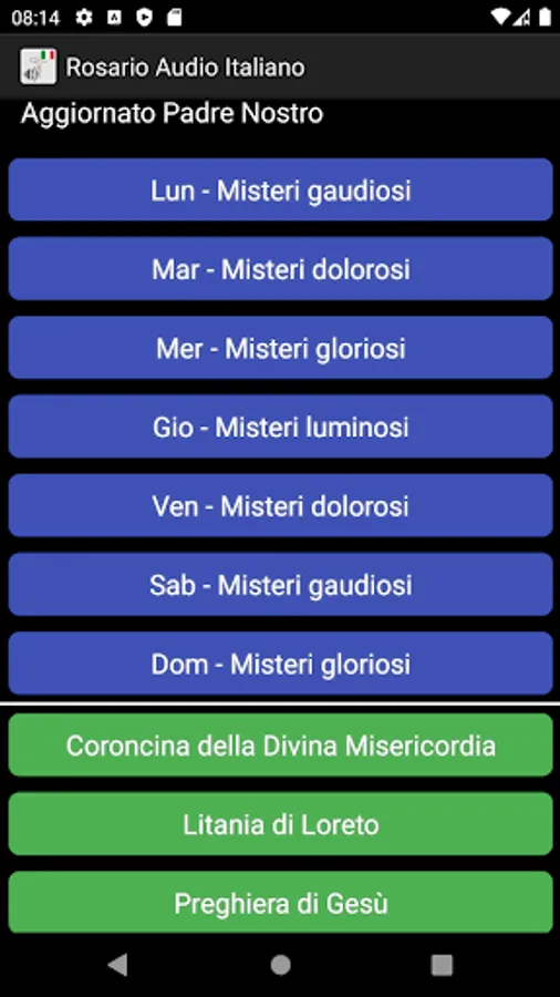 Pray Italian audio rosary offline anywhere - in the car, on the bus, at home. This is the traditional rosary and updated version the new Our Father.