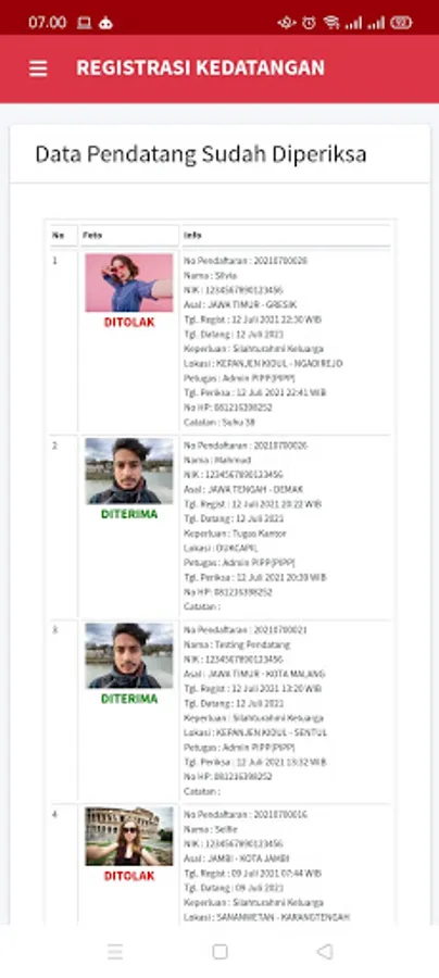 REGISTRASI PENDATANG (PETUGAS) Screenshots