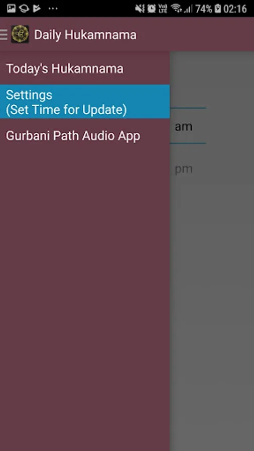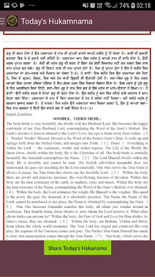 Every morning Golden Temple from Amrtisar reads a hukumnamah from guru granth. This app downloads this hukumnamah and shows it to your mobile phone at the schedule time.
