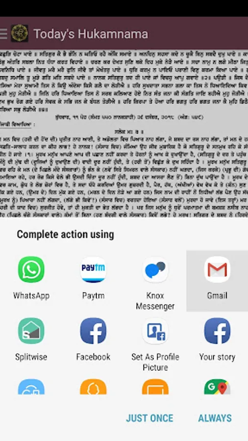 You can schedule the time of the day when you want to get the updated hukamnama and it also support various share via option where you can share sikh preaching on whatsapp groups, facebook or other options.