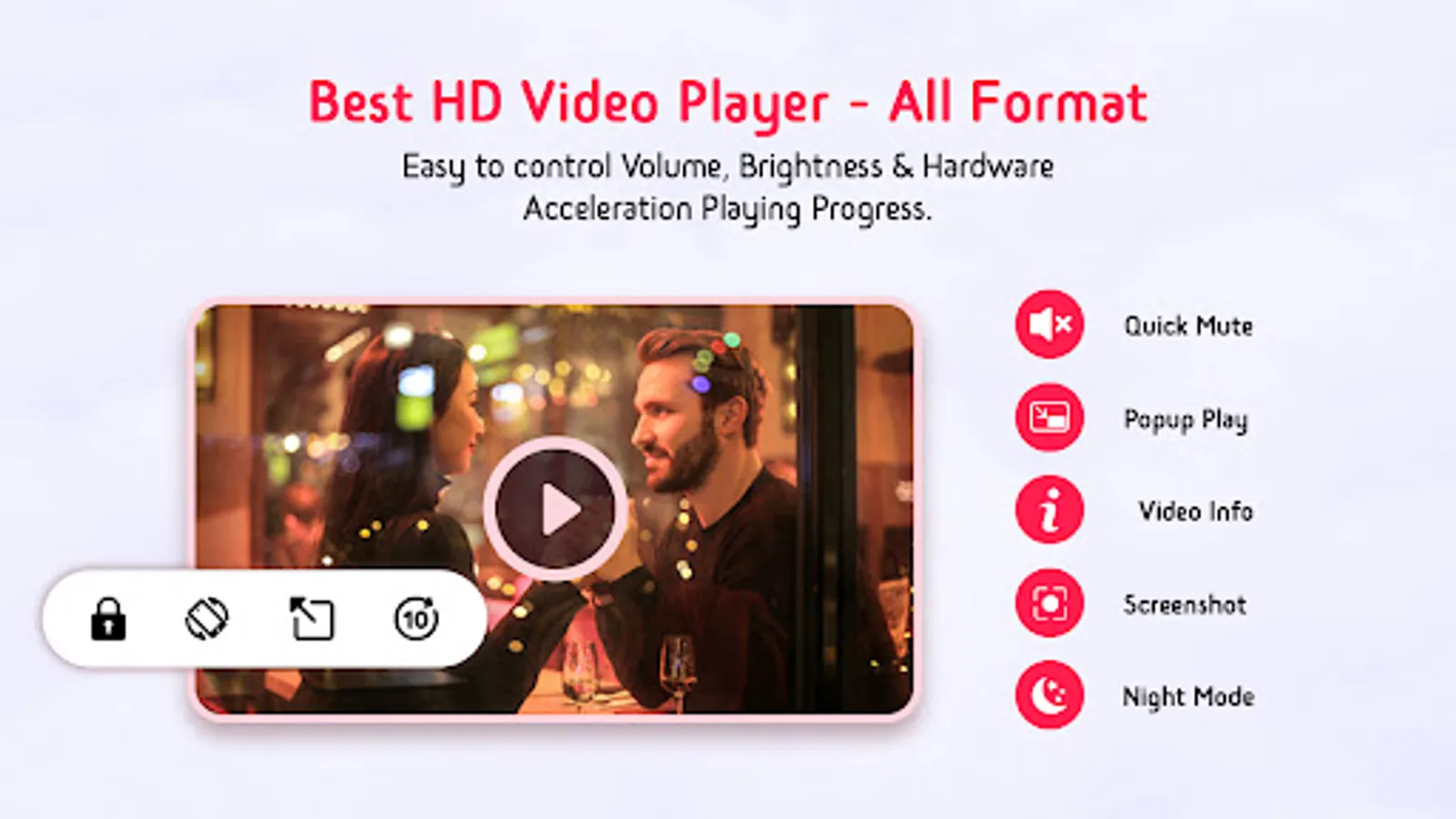 Video Player & Media Player All Format supports almost all video format: 3gp, asx ,avi, dat ,divx ,f4v, flv, m3u8, m4v, mkv, mov, mp4 mpg mts, ogm, rm, rmvb, swf, tsvob, webm, wmv.