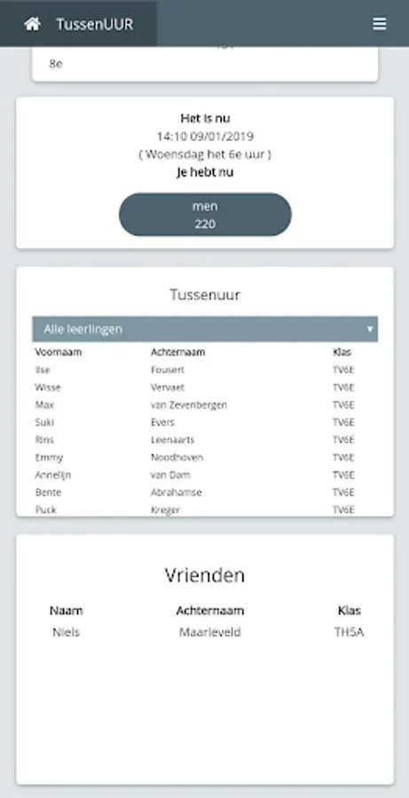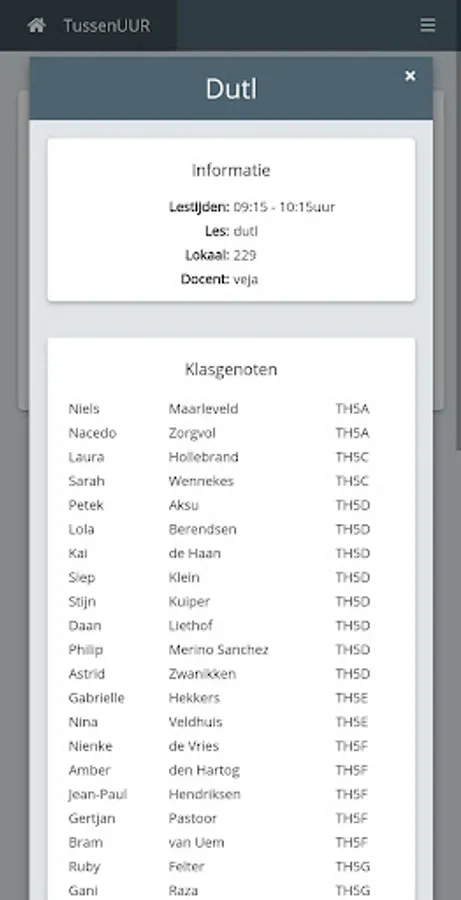 TussenUUR is the easiest app to view your timetable and compare it with all your other friends. At TussenUUR uses Zermelo and therefore always has the most current grid available. Grid changes are also passed on to TussenUUR.