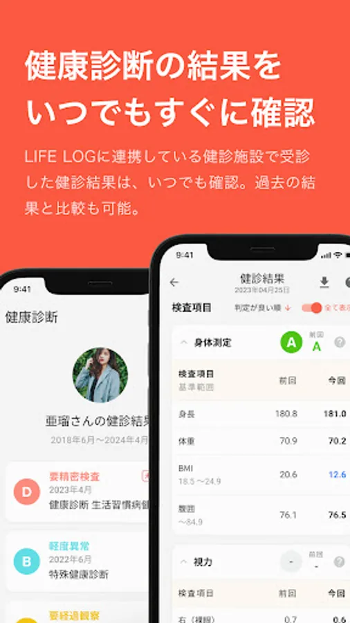 By sharing with your family doctor, you can use it for diagnosis, and by sharing with your company's industrial physician, you can make proposals for improving and maintaining your health condition.