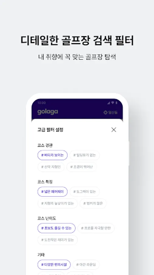 - GPS 위치정보를 이용하여 제공하는 코스별 공략 가이드와 함께 최상의 스코어를 달성해보세요.