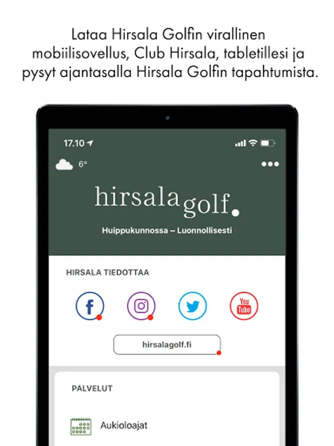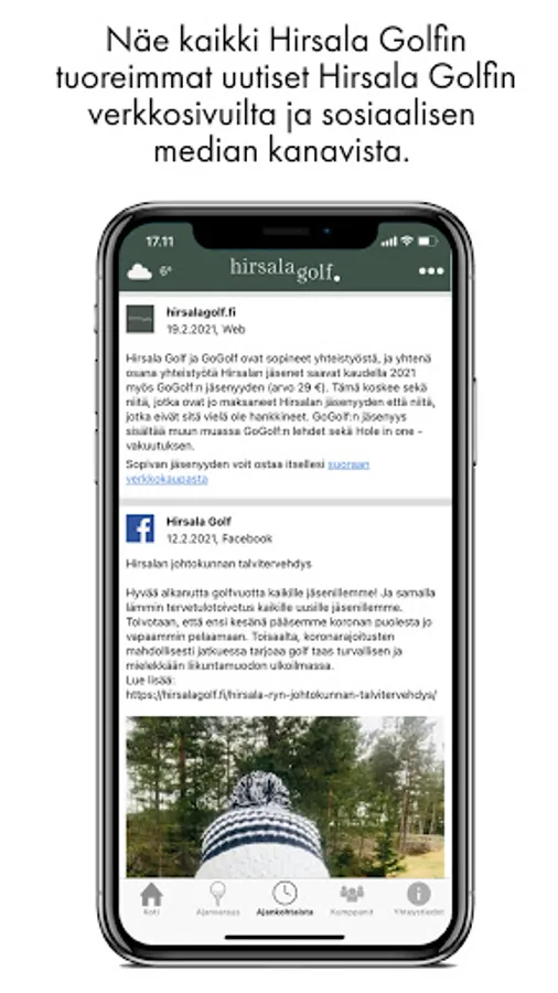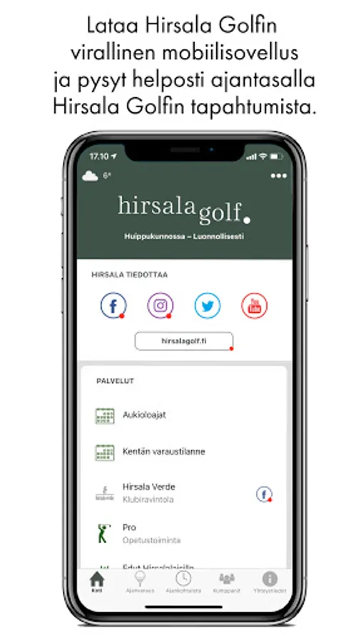 With the application, you can, among other things, book departure times, buy serial cards and follow the bulletins of Hirsala Golf and its affiliates.