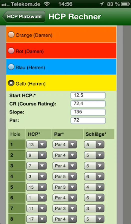 In addition, the scores and the handicap computer as a mobile scorecard for 1-4 players, which immediately shows when the score typing the handicap and the place setting corresponding net points and the player's stroke requirements. If you change also during the round in "score card", you will see the current total, net and gross points by any player of the flight to later as to determine a "winner" ...