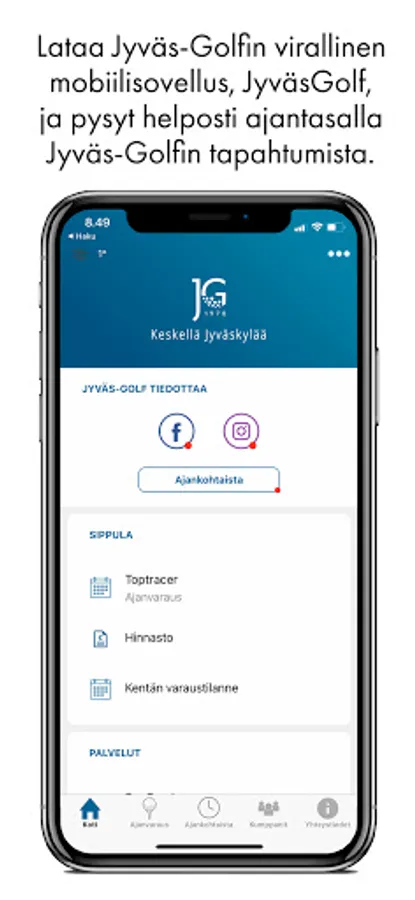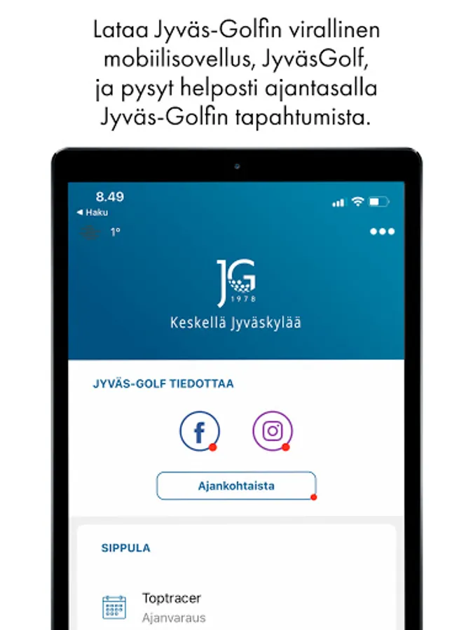 With the application, you can book departure times and follow the bulletins of Jyväs-Golf and its affiliates.