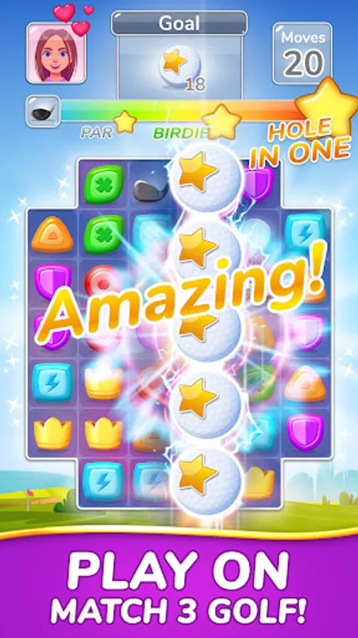 HOLE IN ONE! Be the best on the fairway in this matching 3 game. Design and decorate your own course and resort to experience the best journey with the match 3 puzzle game.