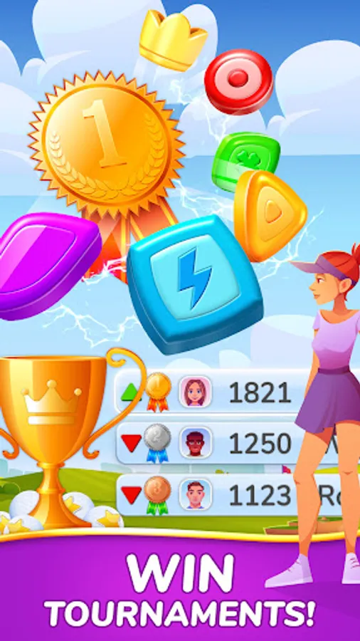 With charming characters and stunning, scenic golf courses to explore, Golf Match 3 is a relaxing and enjoyable match-3 game that will keep you coming back for more. Enjoy your free time on the fairway, crush the golf kings, and win tournaments.