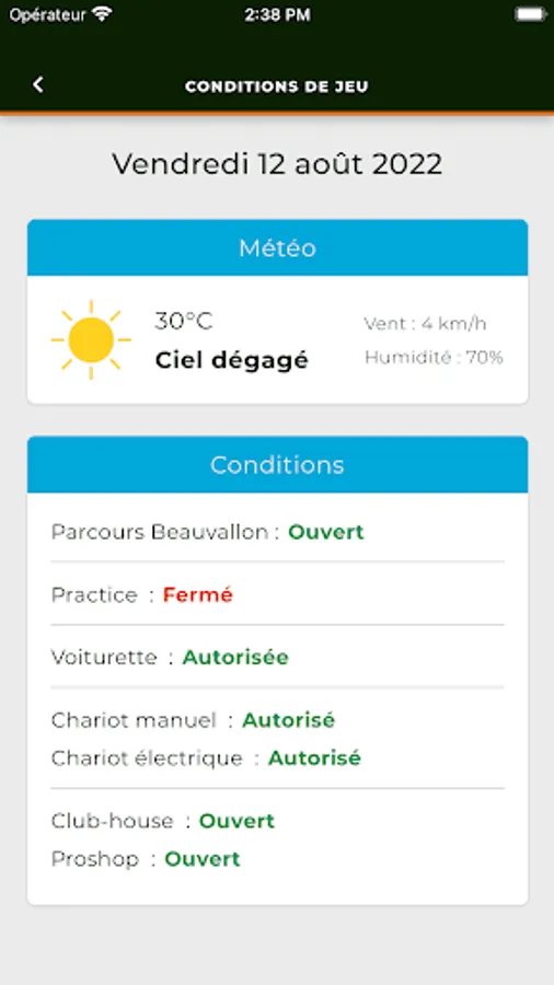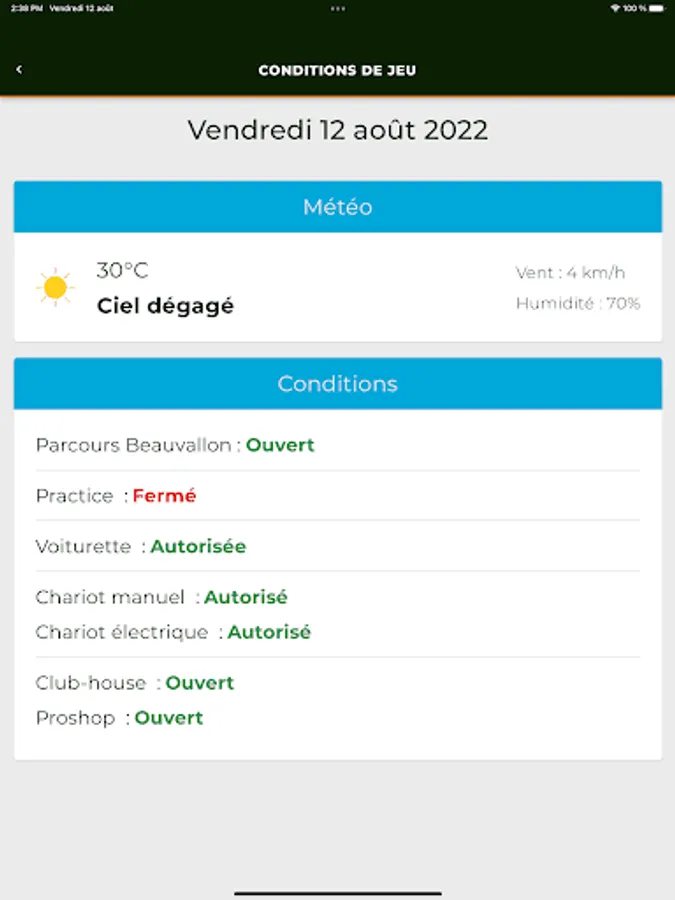 Download the App. of your Golf which allows you to access a panel of services with ease and join thousands of golfers who, like you, are looking for an application to book a tee, register for a competition, consult the tee times and the results of competition, subscribe or re-subscribe, reload your practice card ... Access all the services of your golf course in a few clicks and take full advantage of your visit without any constraints!