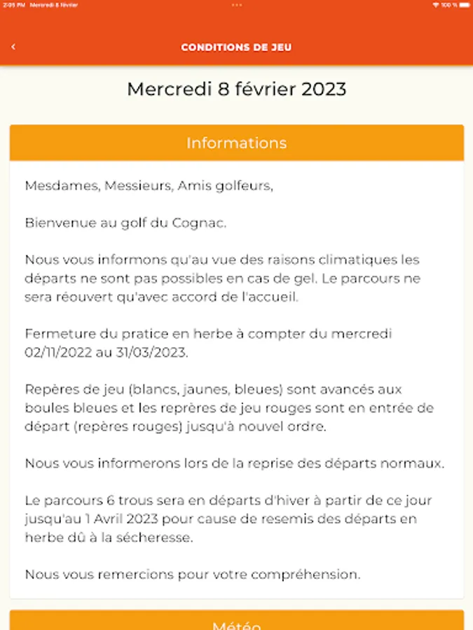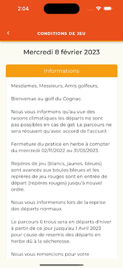 Download the App. of your Golf which allows you to access a range of services with ease and join thousands of golfers who, like you, are looking for an application to book a tee time, register for a competition, consult the tee times and the results of competition, subscribe or re-subscribe, recharge your practice card... Access all your golf services in a few clicks and take full advantage of your visit without any constraints!