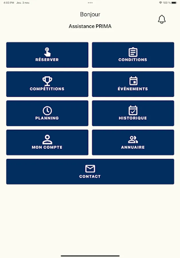 - Departure reservation on the different courses offered,