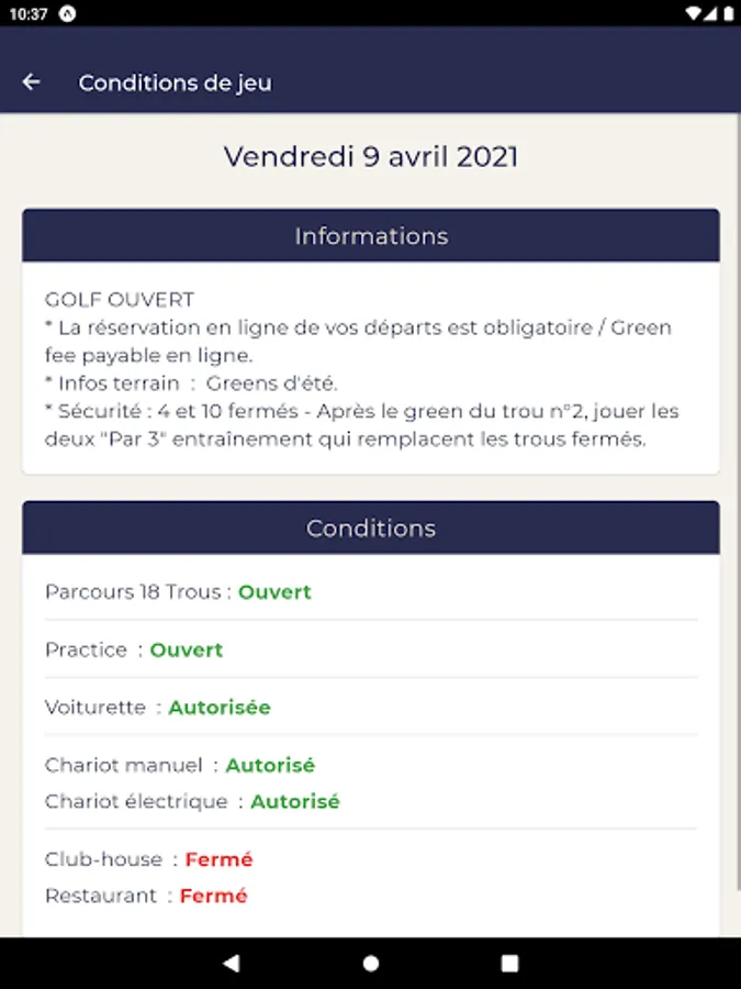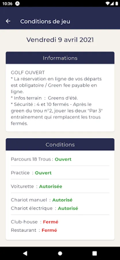 Download the App. of your Golf which allows you to access a panel of services with ease and join thousands of golfers who, like you, are looking for an application to book a tee, register for a competition, consult the tee times and the results of competition, subscribe or re-subscribe, reload your practice card ... Access all the services of your golf course in a few clicks and take full advantage of your visit without any constraints!