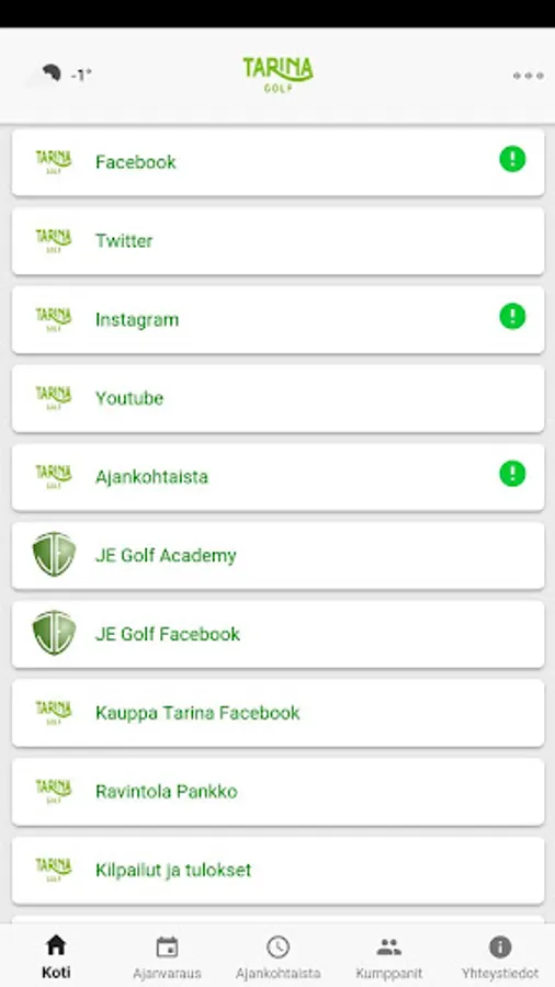 Download the story of the Golf Club application for your phone and tablet. The application allows you to find all the channels and main information channels of Tarina golf social media as well as related services and partners. The application will give the tracking news for the tracked channels the received news.