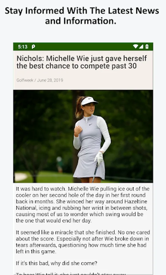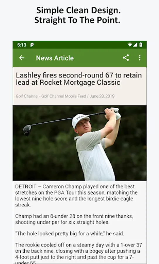 Simple and easy to use, Golf News is the most solid and robust app available to Golf fans using Android phones and tablets.