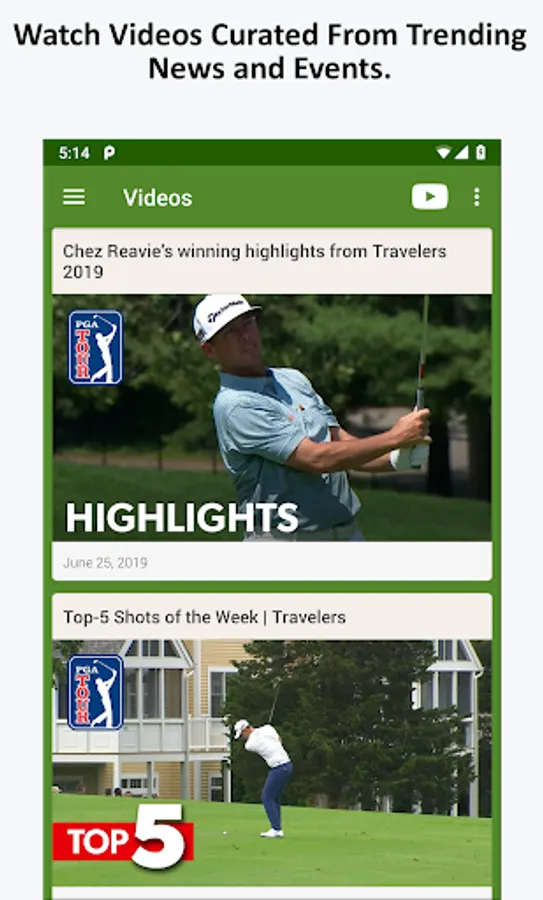 Watch streaming Golf videos based on topics that have been curated from trending Golf news articles and events using our proprietary process.