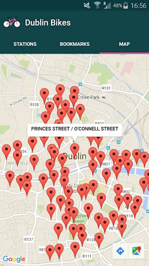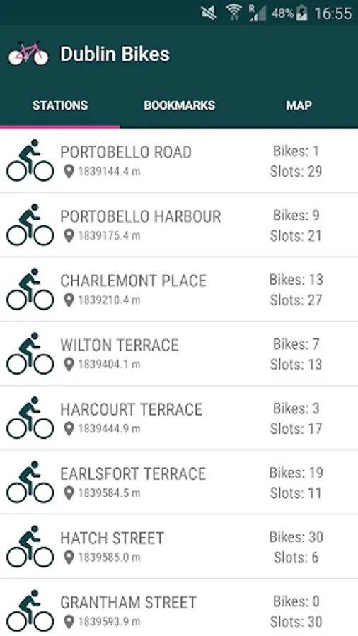 Dublin Bikes is an app to check the stations details, slots status, free bikes, distance, location in the map and all this info displayed in a list ordered by distance from you.