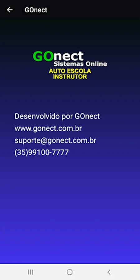 Application developed by the gonect.com.br system, an online system where driving schools manage from students' practical and theoretical classes, to cash flow. With this application the instructor can see all the data of his practical classes, see his schedule of the next classes, the app reads the QRCODE directly from the student's application to register his practical classes more safely.