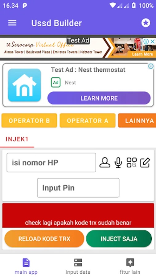 Ussd code maker application independently, to inject the contents of the pulse in the old way but not complicated. automate trx code writing (parsing pulse injection codes) so as to reduce the error rate in conducting transaction top-up pulses specifically for Outlets or counters.
