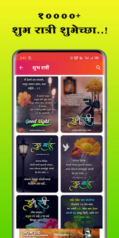 Have a Good Day, Friends. We have created four special categories for you, in which you will get the best wishes of the day in a matter of seconds. Even if it's time for good morning, good afternoon, good evening, or good night, the Wish You app will help you to find your favorite good wishes. So download our Marathi Shubhechha app today & enjoy it.