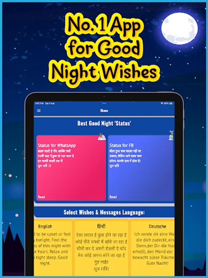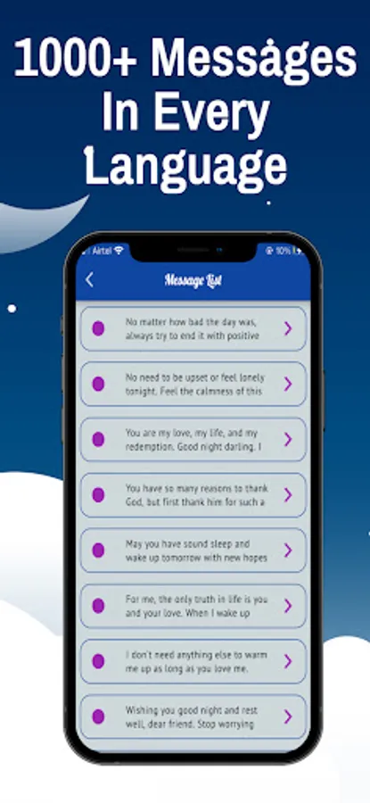 Best Good Night Messages - Our app has a collection of the best good night messages that you can send to your loved ones and friends. These messages are carefully curated to ensure that they convey your feelings of love and appreciation. You can select from various categories, including good night messages for friends, best good night messages, and good night messages for friends with pictures.