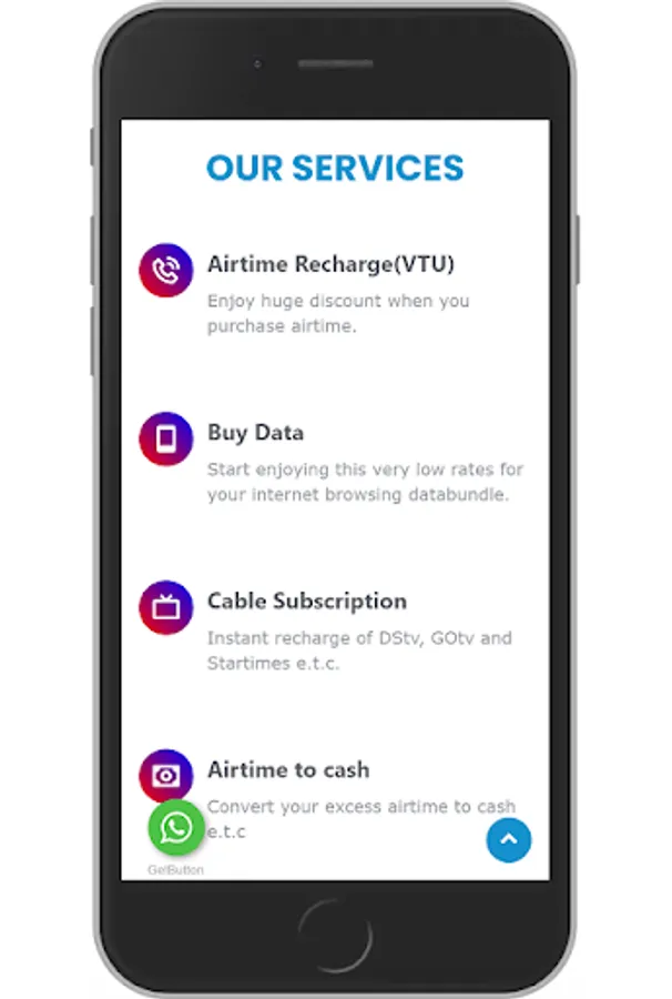We offer instant recharge of Airtime, Databundle, CableTV (DStv, GOtv & Startimes), Electricity Bill Payment and Airtime to Cash, Start enjoying our services in these three(3) simple steps.