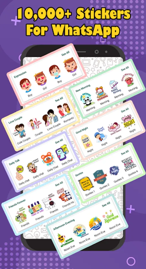 WASticker Sticker Maker For WhatsApp includes Good morning Good Night Stickers, Animated, Romantic & Love , Gujarati, Hindi, Tamil, Telugu, Malyalam, Birthday, Daily Chat and more stickers...