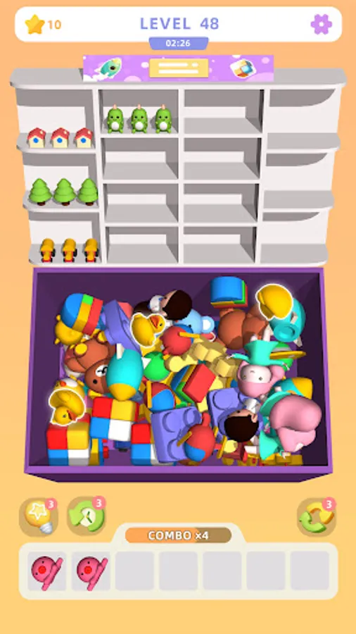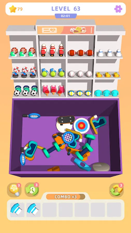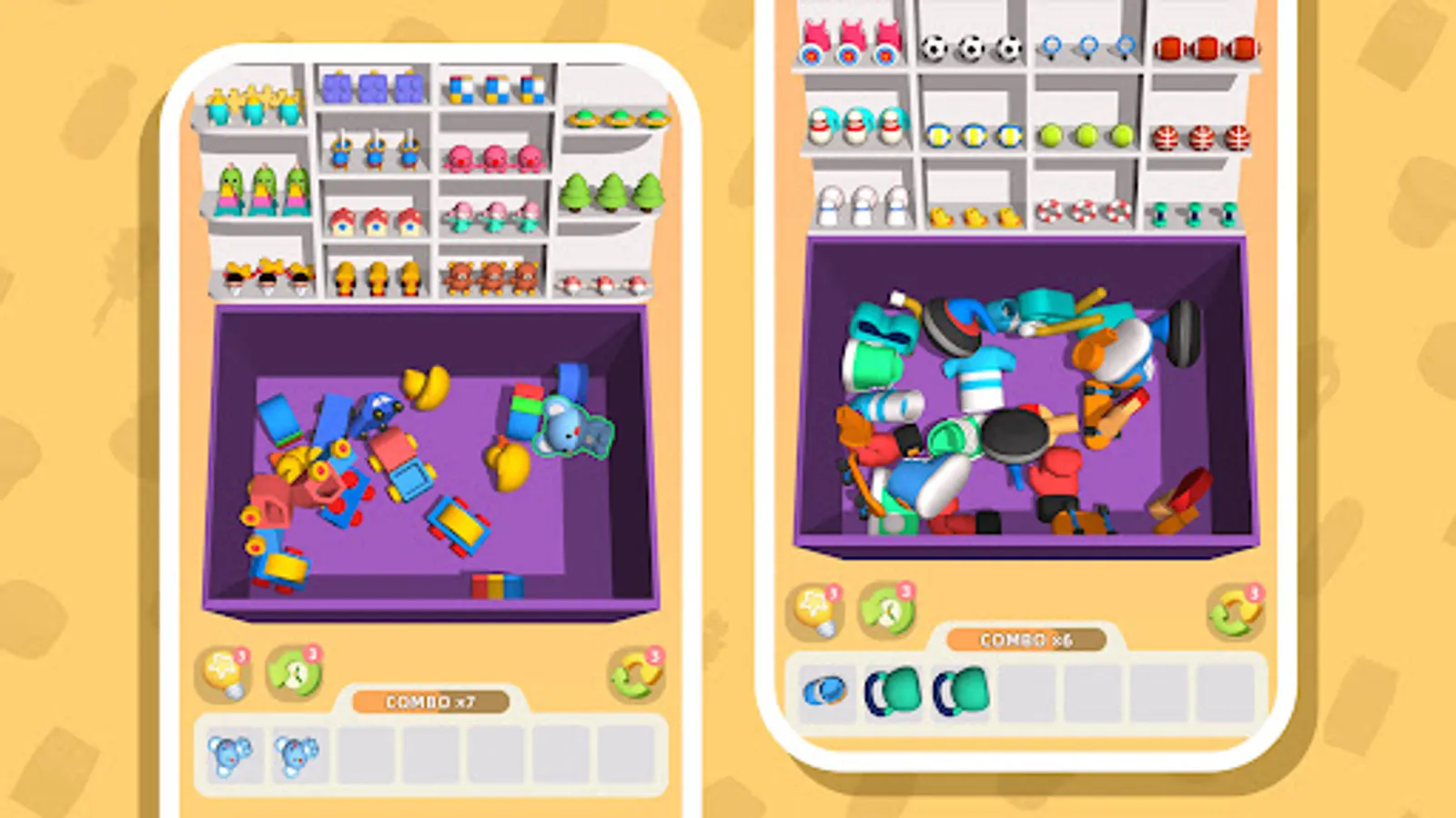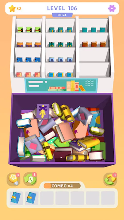 Becoming a match master is simple - quickly tap matching goods into the bottom box before the goods sort time runs out. You need to use your brain power and quick wits to complete these 3d match game.